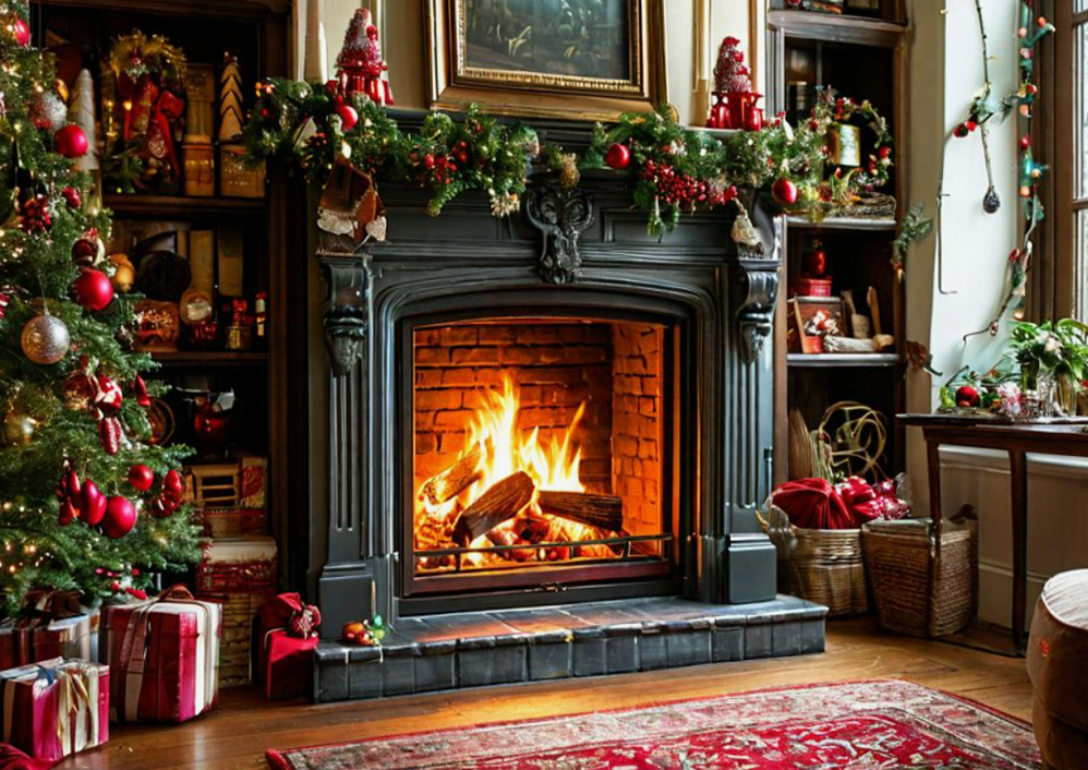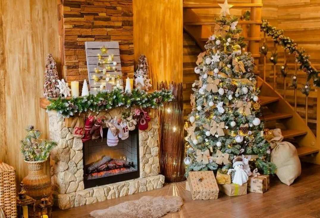 - Камин: Если у вас есть камин, он станет идеальным местом для новогодних украшений. Развесьте на нем гирлянды, повесьте носочки для подарков, расставьте свечи и фигурки.