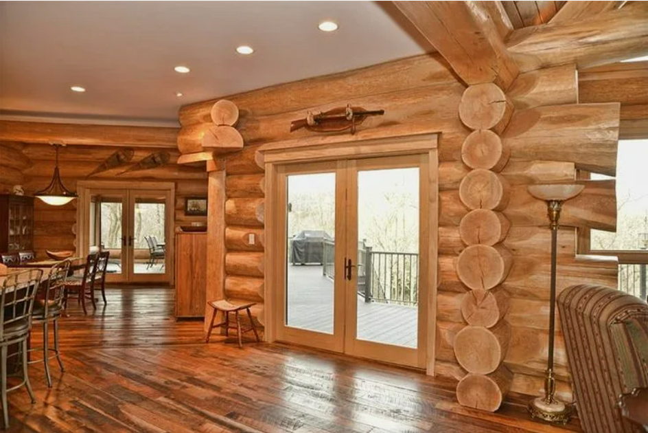 - Пол: Пол в срубе чаще всего делают из дерева – массивной доски, паркета или инженерной доски. Теплые оттенки дерева создают уютную атмосферу и приятны на ощупь.