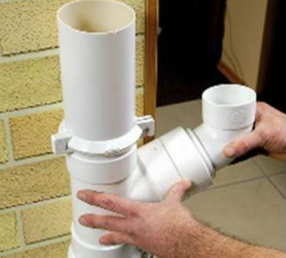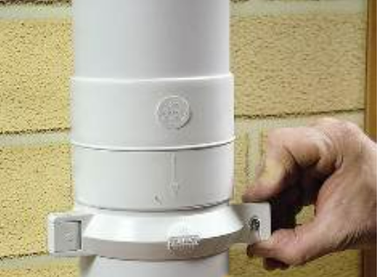 Для того, чтобы соединить трубы, следует использовать муфты, как говорилось ранее. Нужно оставить зазор в муфте при вводе нижней трубы. Под этим элементом устанавливают кронштейн (с хомутом).