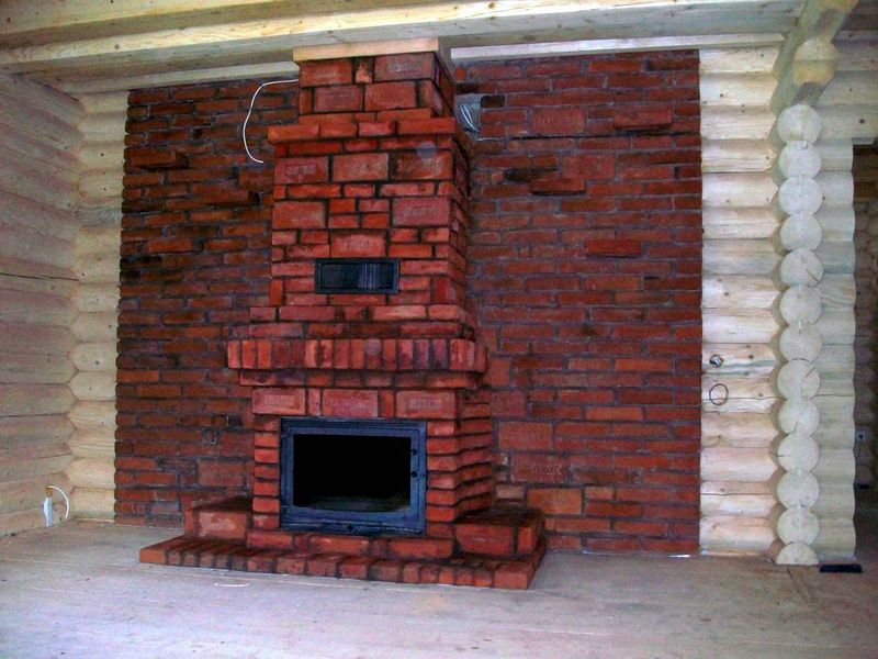 Система из очага, топки и дымохода имеет приличный вес, поэтому усадка фундамента под камином будет больше просадки всего сруба. В связи с этим, не стоит обустраивать топку раньше, чем через год после завершения установки.