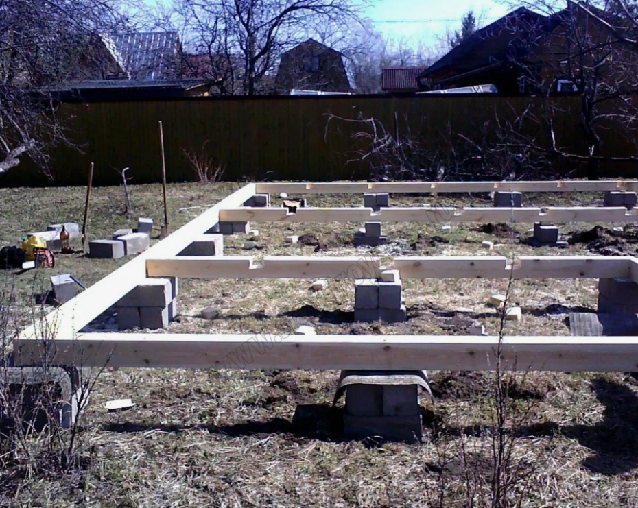 Как устроен: отдельные опоры (столбы) под углами здания и местами пересечения стен. Шаг — 1,5–3 м.