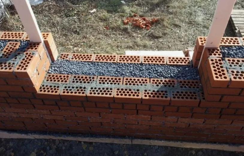 а) Засыпка керамзита в пустоты (для домов с колодцевой кладкой или каркасных домов):